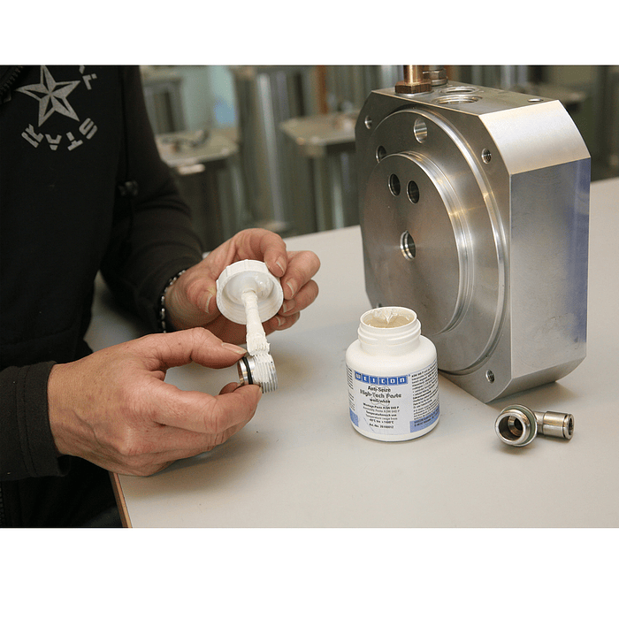 Limpiar y desengrasar las superficies. Aplicar la pasta de montaje de manera uniforme. La pasta Anti-Seize está indicada exclusivamente para el uso específico de su principio activo, pero no sustituye a una lubricación con aceite o grasa.